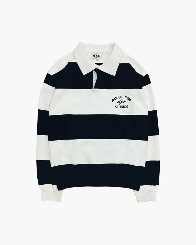 Double You Studios STRIPE RUGBY POLO KNIT (WHITE/NAVY)